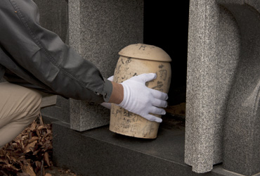 弊社スタッフにより簡易的に供養し、骨壺が割れないよう、丁寧に取り出します。その後のご遺骨の処置に合わせ梱包・輸送いたします。骨壺が割れて、土と混ざっている場合は、土ごと持ち帰ります。